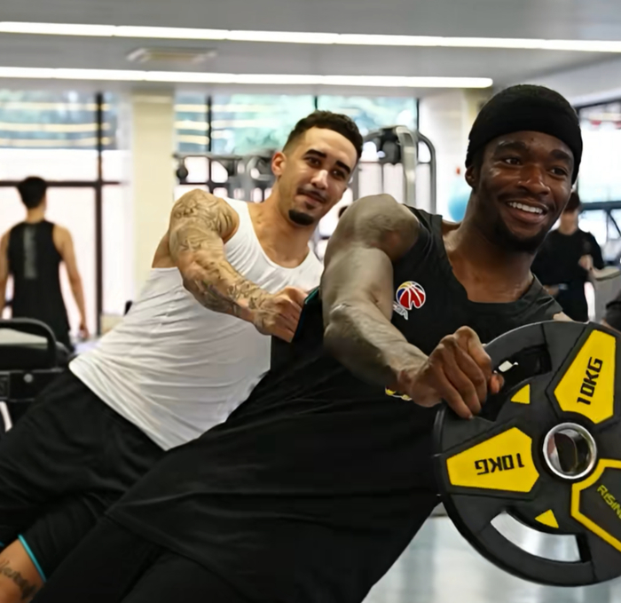 甚至在训练的时候,徐杰还好好欺负了一下杜润旺。特别是帮助杜润旺进行力量训练,一直都在纠正他的动作,非常有趣。