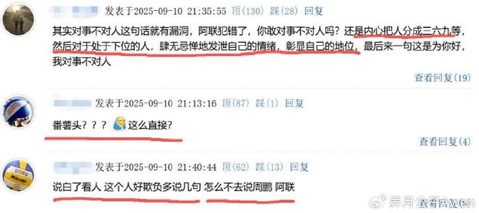 不过赵睿这番话,球迷并不买账,不少理性的球迷就直言:“对事不对人这话就有漏洞,阿联犯错了,你敢对事不对人吗?还是内心把人分成369等,然后对于处于下位的人,就肆无忌惮地发泄自己的情绪,彰显自己的地位,最后来一句这是为你好,我对事不对人。”