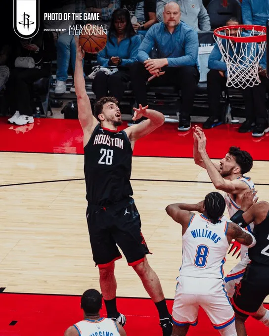 赛后,火箭官方分享阿尔佩伦-申京赛场照,全场14分13篮板,砍下两双数据。