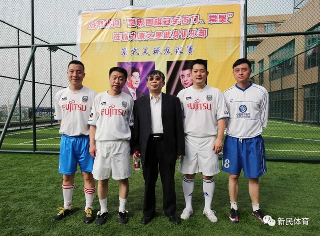 刘世振(右一)、常昊(右二)、古力(左一)与聂卫平在球场