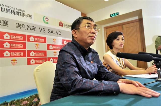 2014年10月,世界桥牌锦标赛混合团体决赛,聂卫平和王文霏(右)搭档解说比赛